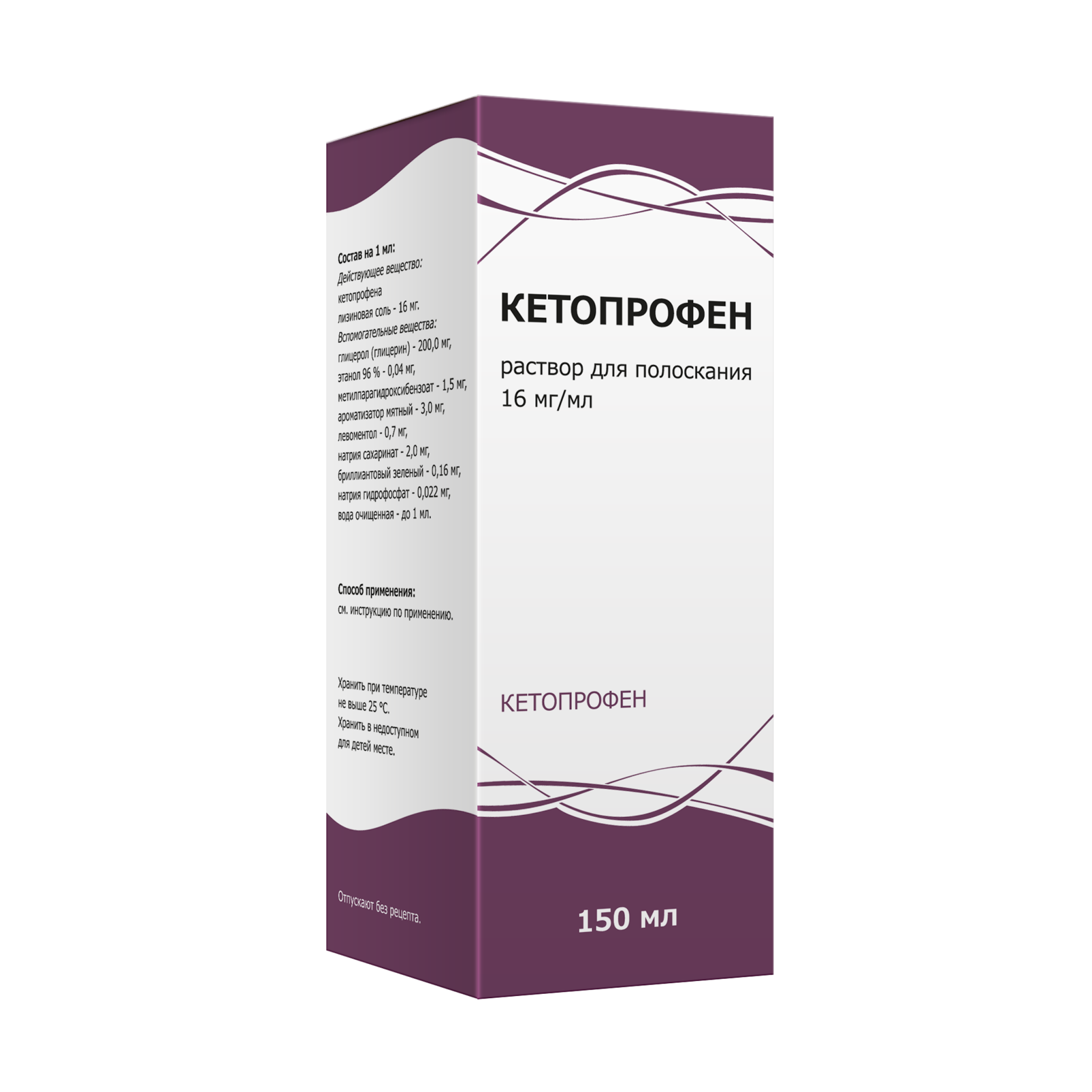 полоскания содержит 160мг кетопрофена лизина, что соответствует дозе,